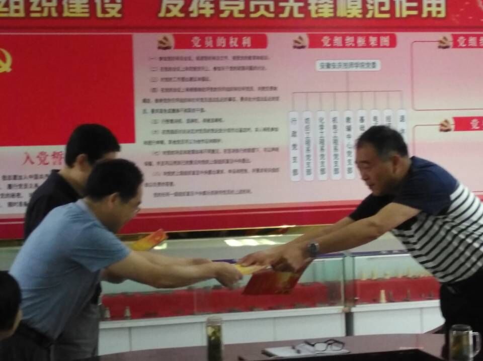 不忘初心,牢记使命。为强化党员理想信念教育,增强党员党性意识,基础课党支部于6月20日上午在院党员活动中心开展了党员“政治生日”活动。支部全体党员及入党发展对象叶宇同志为三位党员:何峰、何文斌、余志文集体过“政治生日”,院党委委员、副院长王长根同志为上述三位同志发放了“政治生日”贺卡。随后,全体党员同志在院领导王长根同志的领誓下,重温了入党誓词。此次活动有效地激发了广大党员的自豪感、荣誉感、责任感和使命感,将进一步坚定全体党员理想信念,牢记党的宗旨,永葆党员本色。