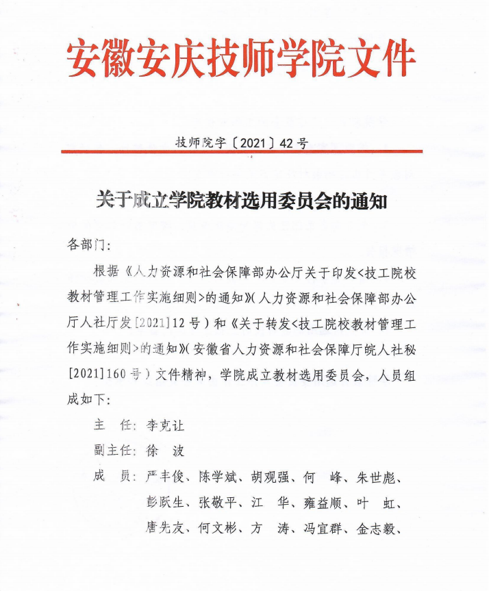 关于成立学院教材选用委员会的通知
