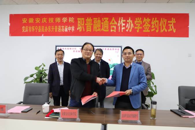安庆技师学院和东升普通高级中学举办“职普融通、合作办学”签约、揭牌仪式